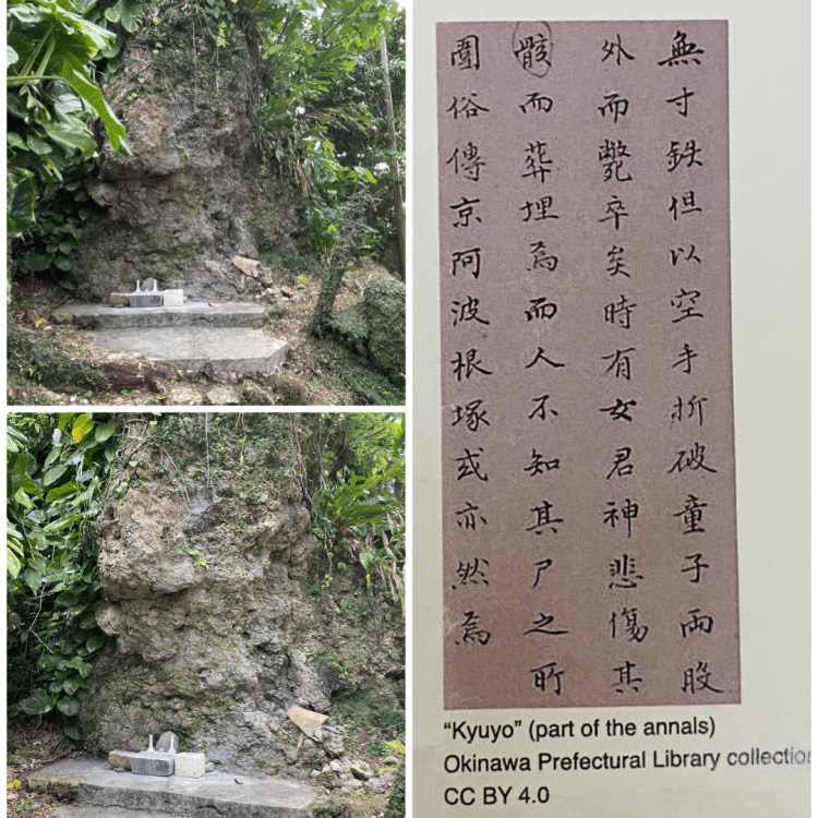 For the first time history of Ryukyu, the characters for “空手” were used in relation with an affair involving a man Kyo Ahagon Jikki. This is the place Where are you now Ahagon died. The Word “空手” here means empty hand fist , Ahagon was a martial expert.