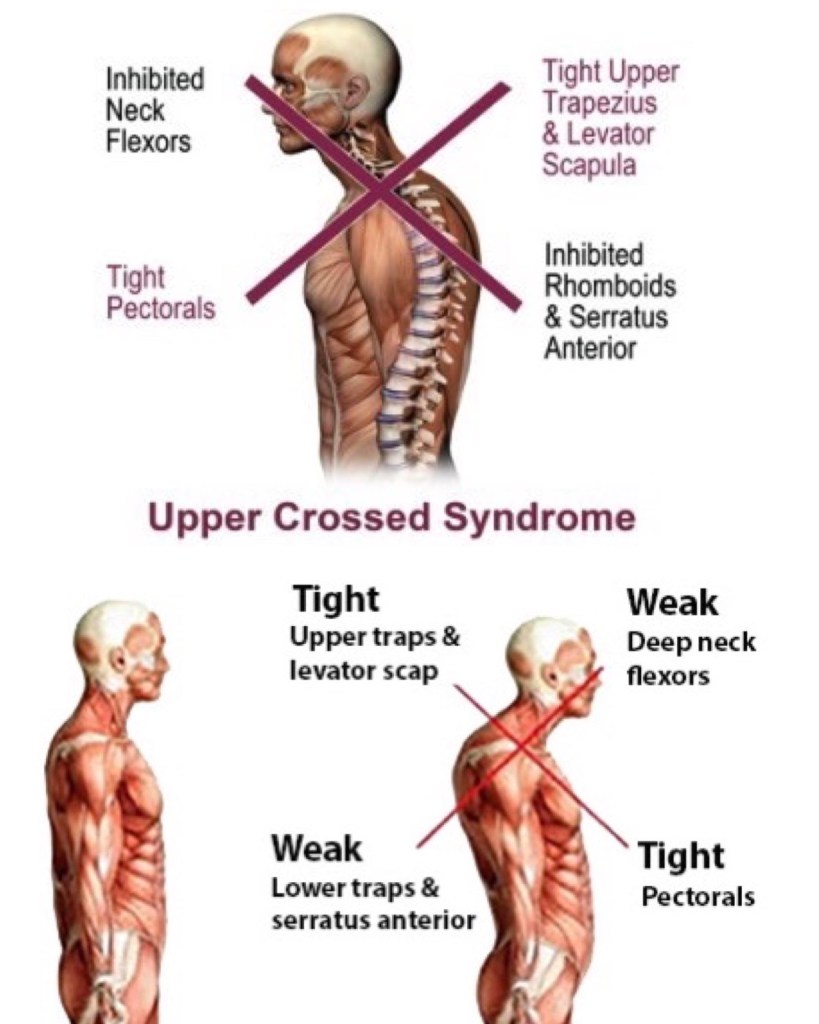 കഴുത്ത്, മുകൾഭാഗം, നെഞ്ച്, തോളുകൾ എന്നിവയിൽ അസന്തുലിതാവസ്ഥ ഉണ്ടാകുമ്പോൾ പലപ്പോഴും UCS എന്ന് വിളിക്കപ്പെടുന്ന അപ്പർ ക്രോസ്ഡ് സിൻഡ്രോം (Upper Crossed Syndrome) സംഭവിക്കുന്നു. ഇത് സാധാരണയായി മോശം postures അല്ലെങ്കിൽ തുടർച്ചയായ തെറ്റായ ചലനങ്ങളുടെ ഫലമാണ്. ശരിയായ, സ്ഥിരമായ, ശരിയായ വ്യായാമത്തിലൂടെ ഇത് ശരിയാക്കാം.